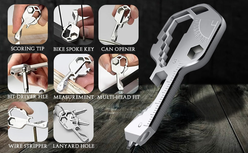 Multi-fit Driver, Bike Spoke Key, Wire Bender, Lid Opener, Bit Driver, Lid Opener, Wire Stripper, Ruler, Bottle Opener, Serrated Edge, Etc...